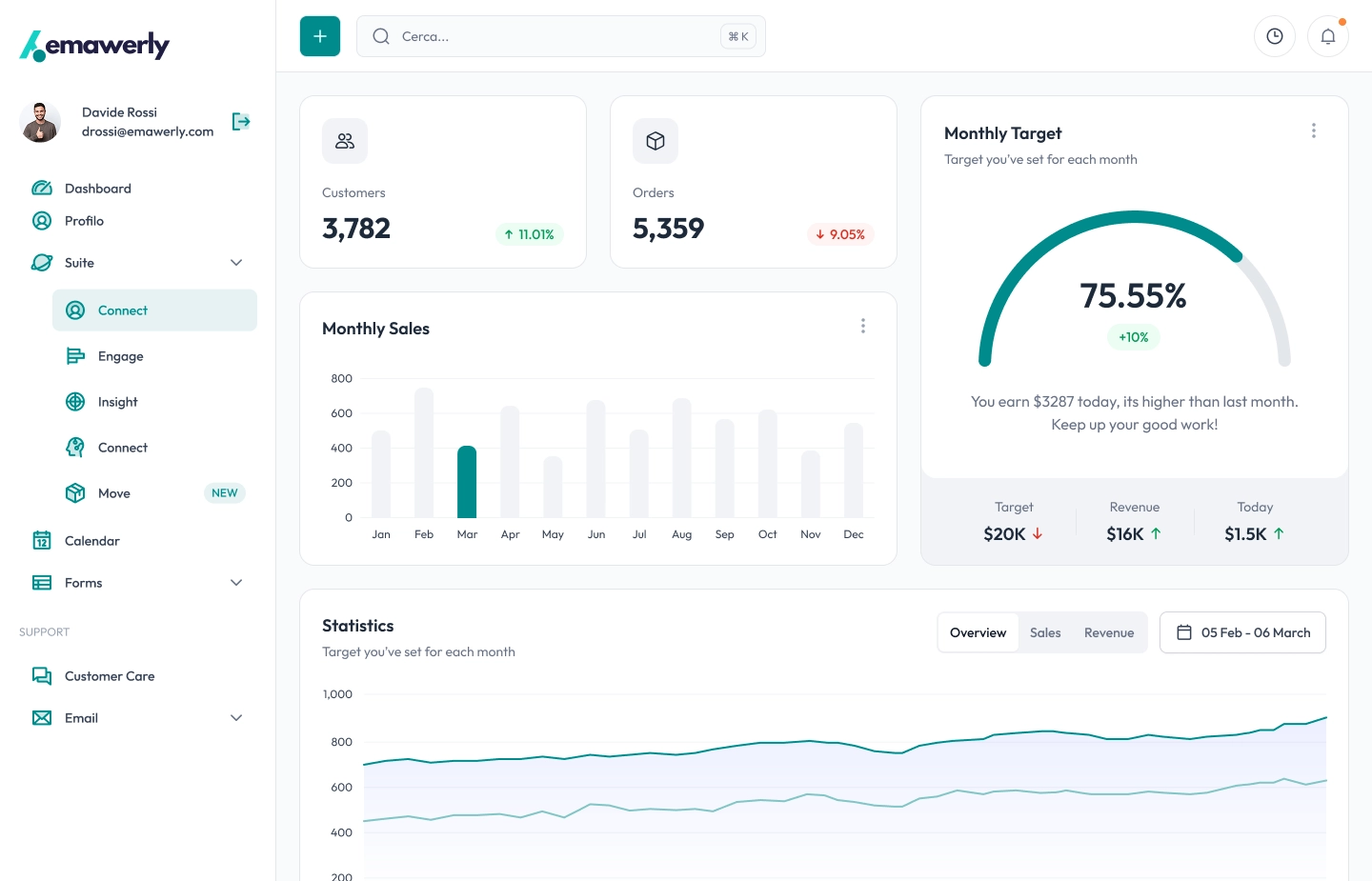- Crea dashboard personalizzate con drag & drop